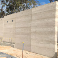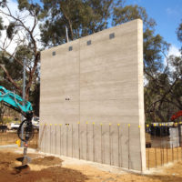 The walls in this project ranged from 3.6m to 5.2m in height. We used a different coloured soil and cement to our typical colour. This achieved the clients desired contemporary cooler toned grey wall colour.